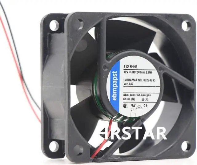 Product parameter Type :612NHHR; Brand: ebmpapst; Nominal voltage : 12VDC; Frequency :50/60Hz; Valid for approval / standard :CE ; Speed :6800min-1 ; Power :2.9W ; Ambient temperature -20°C-70?; Current: 240mA ; Size:60*60*25mm;