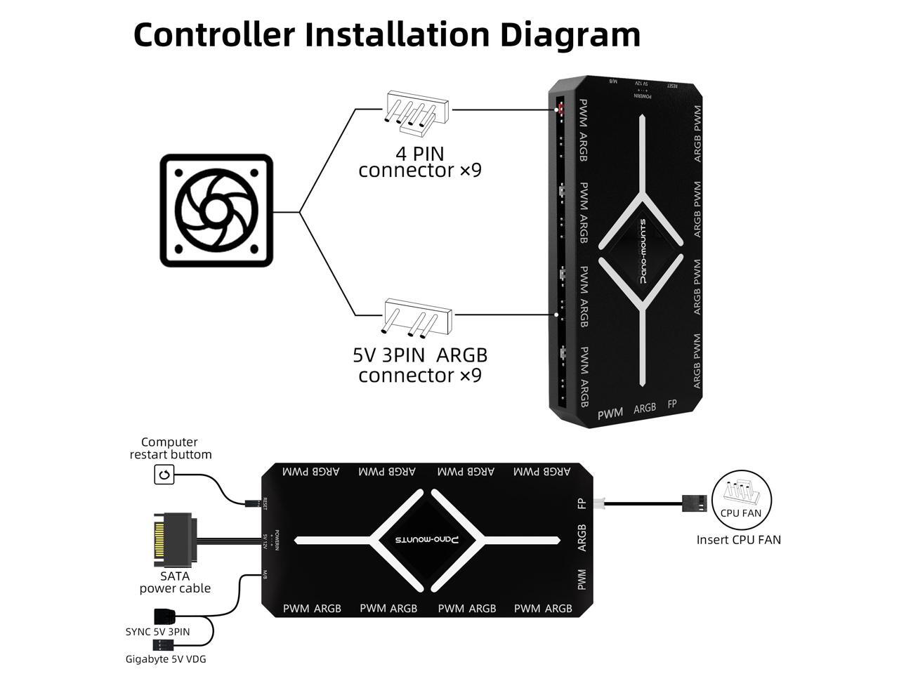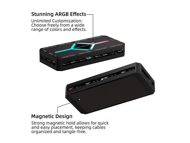- 1. 2IN1 PWM +ARGB FAN HUB: Support 9x4PIN PWM & 5V 3PIN ARGB interface to save your space effectively and make the cable management easier.