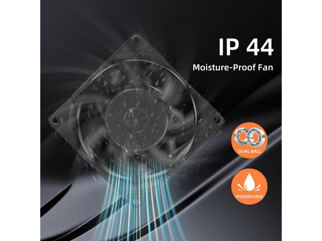 - MOISTURE-PROOF: New trend of dc 12 volt moisture-proof muffin fan that designed for high humidity (80%) cooling vent project,verified test up to 4cm water for 4 hours.
