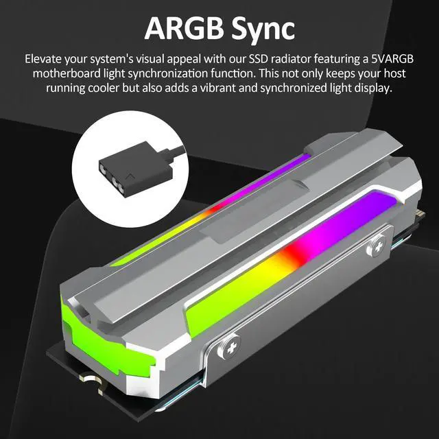 ARGB Sync: Elevate your system's visual appeal with our SSD radiator featuring a 5VARGB motherboard light synchronization function.