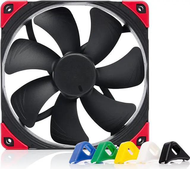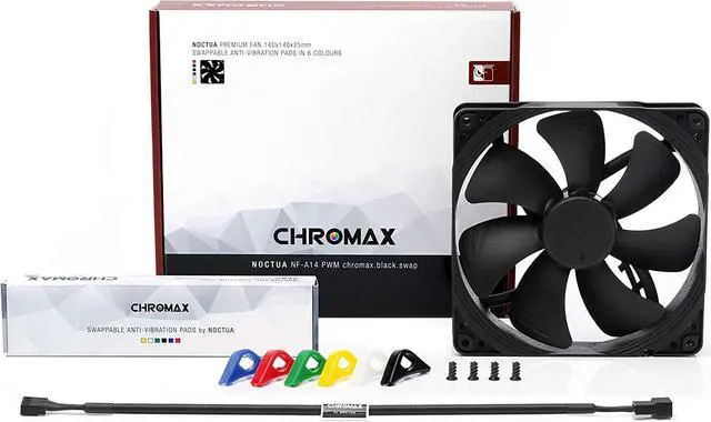 swap edition combines the NF-A14s signature quiet cooling performance with an attractive all-black design and a bundle of swappable red, white, blue, green, yellow and black anti-vibration pads that allow the colour-customisation of the fan to match individual build colour schemes.