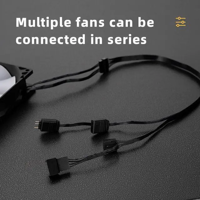 Efficient Power Supply: The fan utilizes both 4-pin and 3-pin power connections, offering flexibility and ease of installation. The power lines are designed with a series interface, allowing seamless integration with other devices.