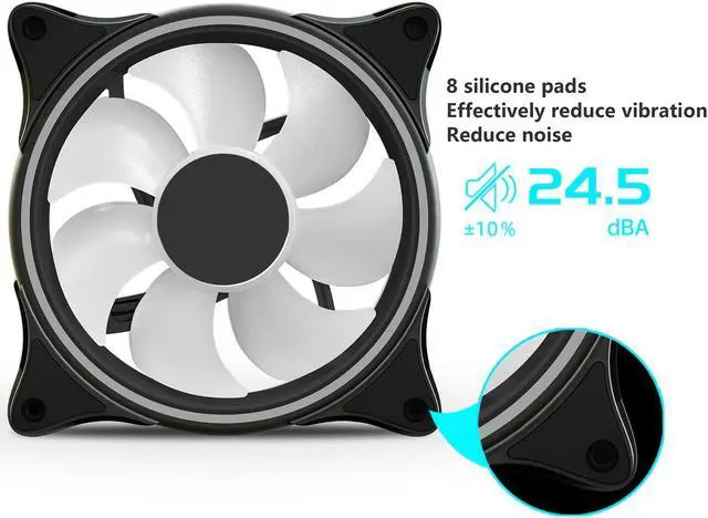 Silent & Seismic Design: Feature hydraulic Bearing self lubricates, makes the fan run noiseless and the air volume larger; That 8 damping silicone pads fixed on both sides of the fan frame is to reduce the noise of the polarization motor vibration.