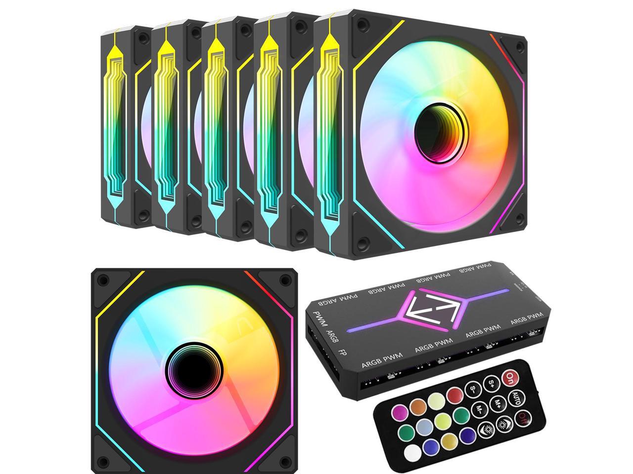 RGB Fans:6 pack 120mm PWM ARGB Case Fan with Fan Hub and Remote,Speed Control,PWM Control Fan for Computer Case and Liquid Cooling System