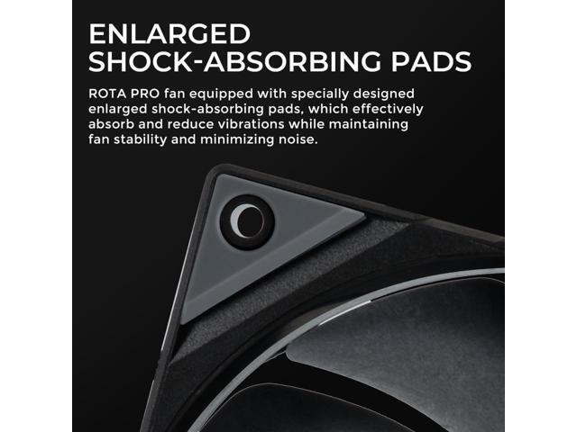 - Four large noise-damping pads are equipped to absorb vibration. Combined with the stability of the three-phase motor and FDB bearing, TRYX ROTA PRO 120 case fan keeps noise level under 30.97dB(A) even under full load
