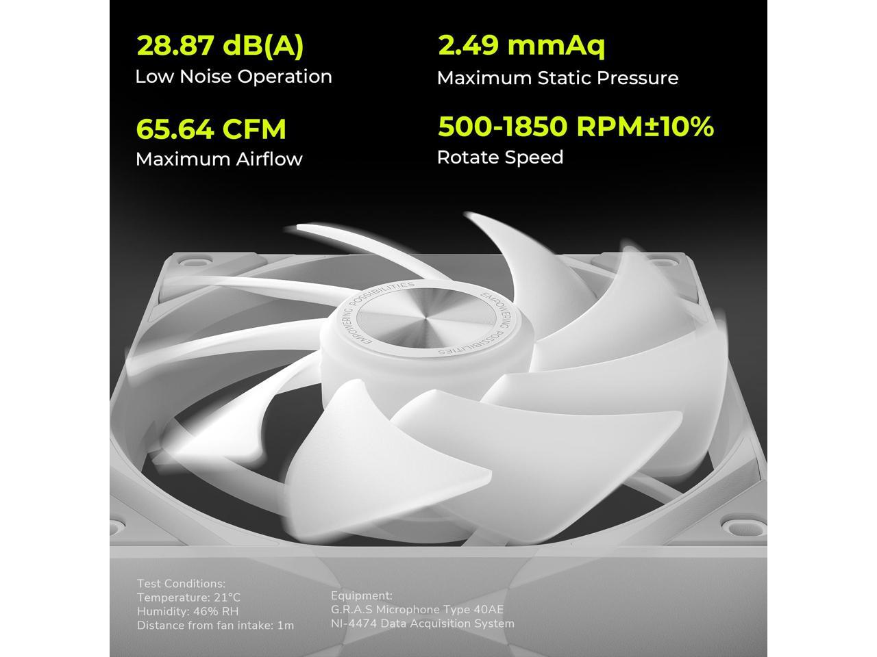 - FAN NOISE CONTROL: Four enlarged noise-damping pads are equipped to absorb vibration. TRYX ROTA SL ARGB White 120mm case fan keeps noise level under 28.87dB(A) even in full load