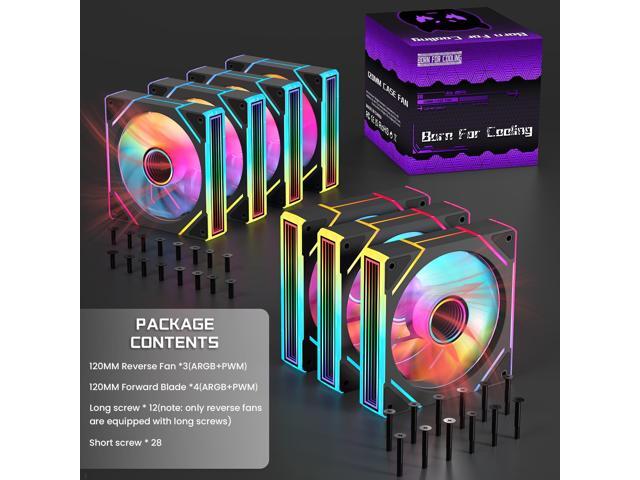 - Pc Fans 120mm 7 pack:With 4 Forward Blade fans and 3 Reverse Blade Fans, the optimized airflow design ensures enhanced performance for your computer.