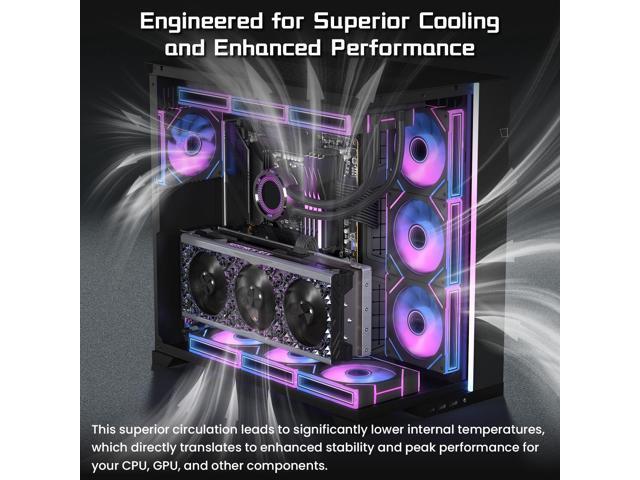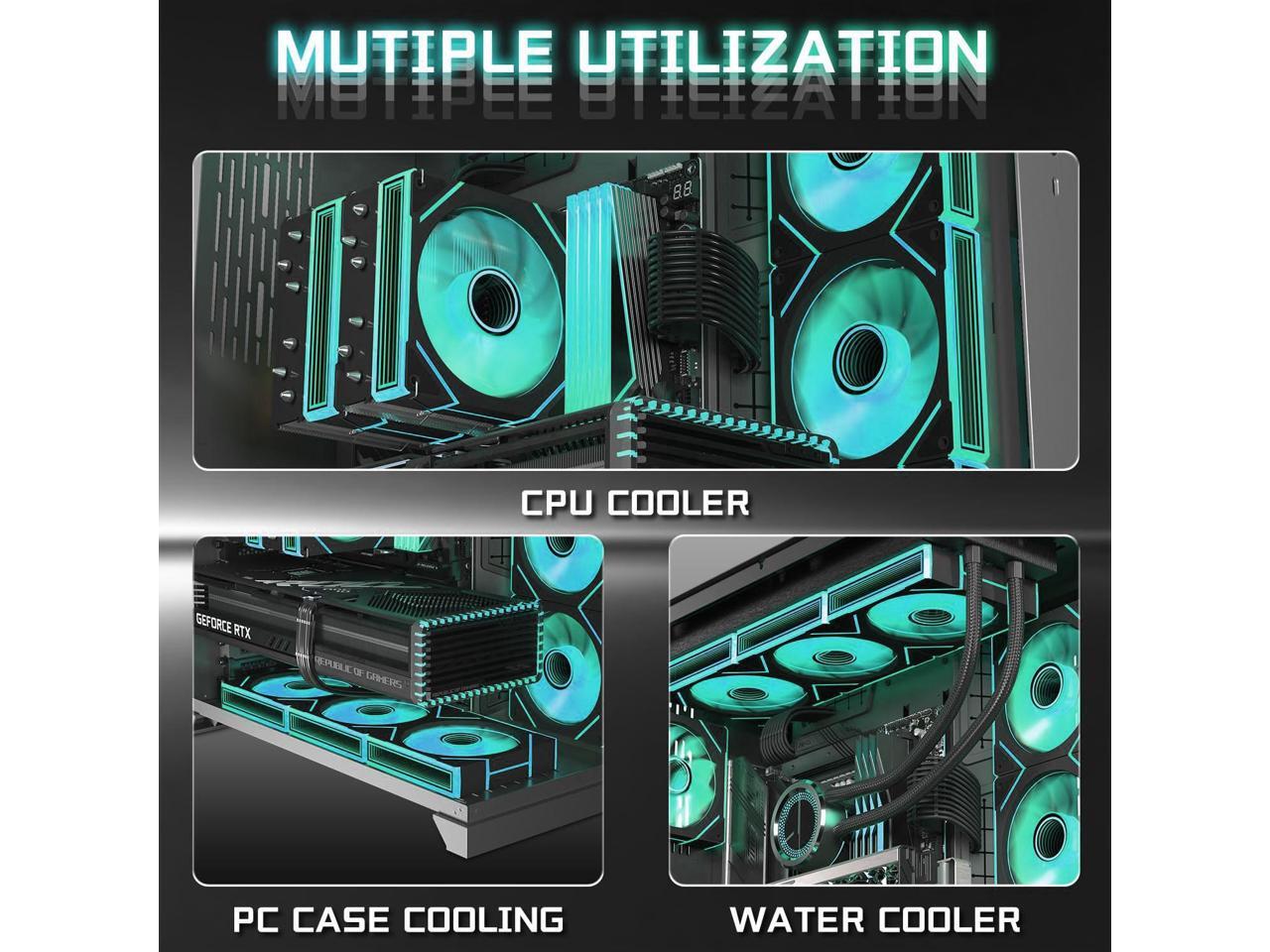 - PC fans are not only suitable for use as case fans but are also ideal for pairing with CPU coolers to create a synergistic cooling effect. They efficiently remove dry heat from the case and dissipate the intense heat generated by the CPU during operation, achieving maximum cooling performance. These fans are highly compatible with cases, AIO, and CPU coolers.