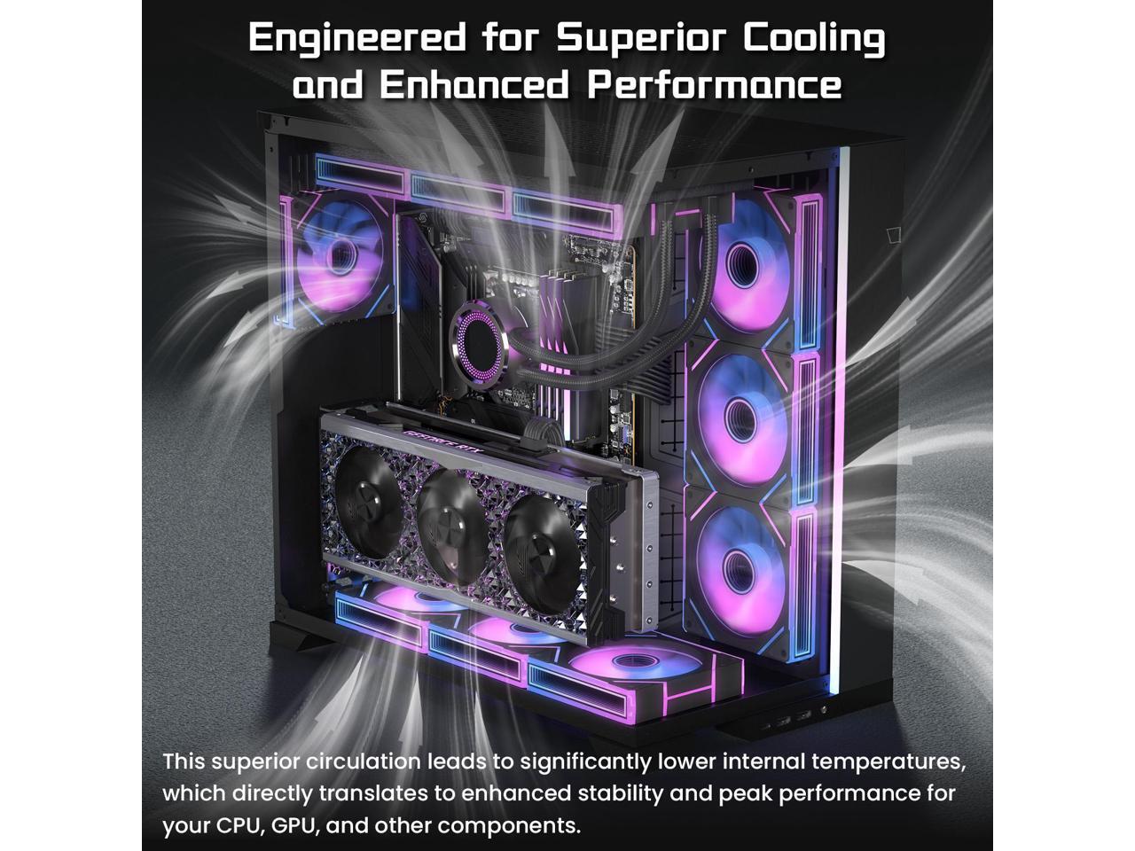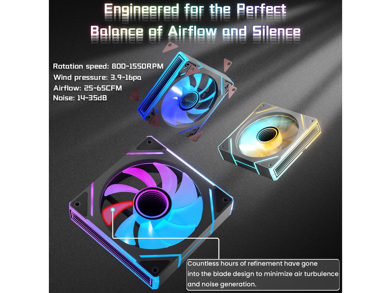 - Ultimate Cooling Performance:Our case fans operate at 1550 RPM, making them an ideal choice for PC cooling. This speed was carefully chosen to balance performance with acoustic comfort. They efficiently expel heat, ensuring optimal temperatures even during intensive tasks. Their enhanced air pressure through heat sinks and complex pathways boosts cooling efficiency, delivering unmatched reliability for stability and high-performance users.