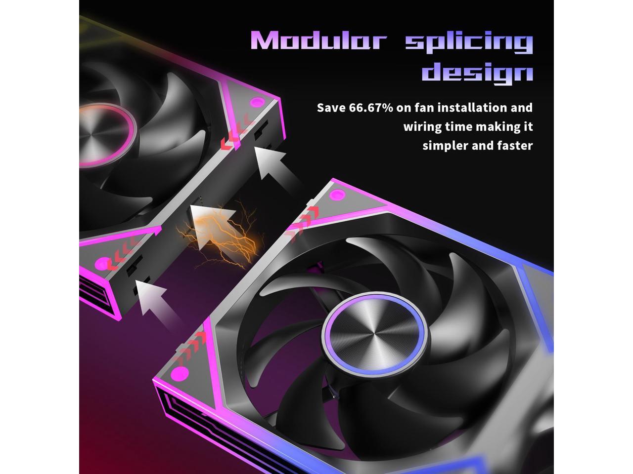 6 Packs Modular 120mm ARGB Chassis Fans, 3 Forward Fan +3 Reverse Fans,Easy to Assemble, ARGB and PWM Cooling Fan PC, Module ComputeFans, Daisy-Chain 5V RGB,Black