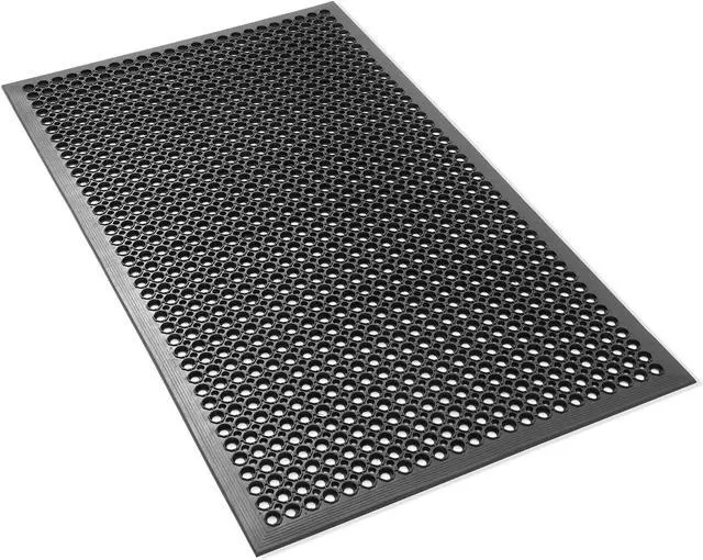 These mats are designed with safety and practicality in mind. The non-slip surface offers excellent traction, even when wet, minimizing the risk of slips and falls. The strategic drainage system efficiently manages spills, keeping the surface dry. With tapered edges for smooth transitions, these 36 x 60 inch mats are perfect for various commercial and industrial settings, ensuring seamless integration and easy accessibility.
