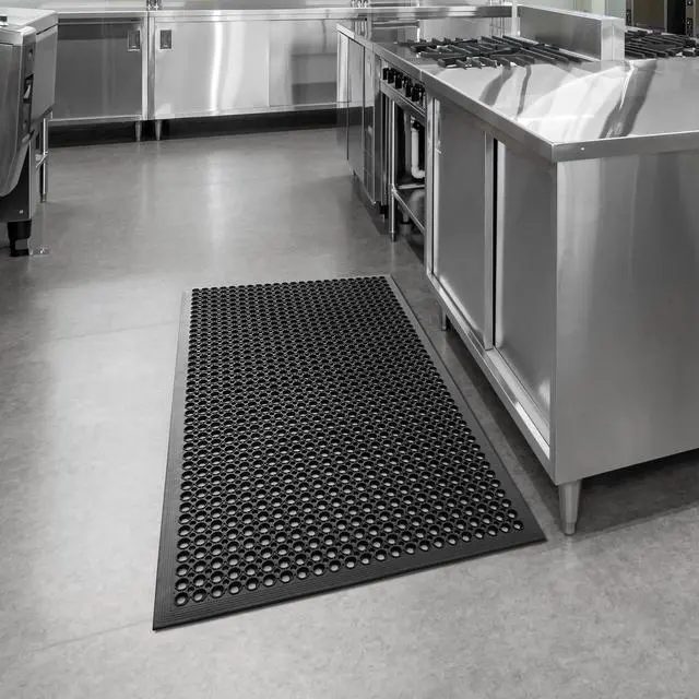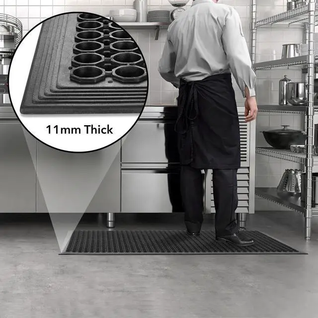 Gridmanns commercial restaurant floor mats are designed to elevate safety and comfort in demanding food service environments. The durable rubber material is built to withstand the toughest kitchen conditions, making maintenance a breeze and significantly reducing the risk of accidents in high-traffic areas. These mats are designed for use in restaurant kitchens, food preparation areas, dishwashing stations, service areas, and bar areas.
