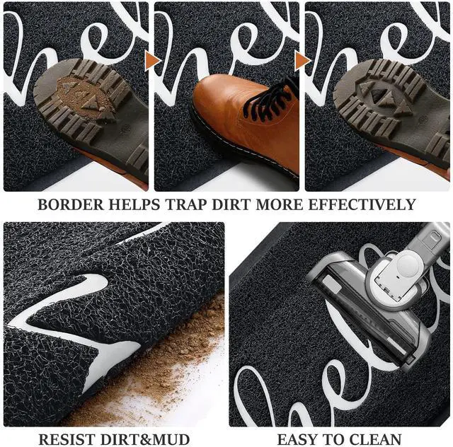 Traps Dirt Well: the concave word and convex border helps the multi-purpose mat to trap dirt more effectively; simply rub your shoes on the floor mat several times and dust, mud, or snow will be removed from shoes or pets, leaving floors clean and dry