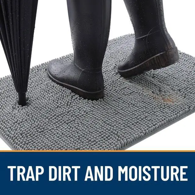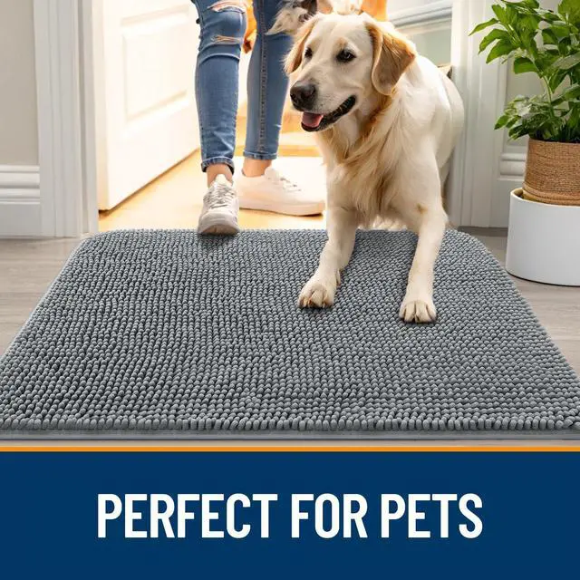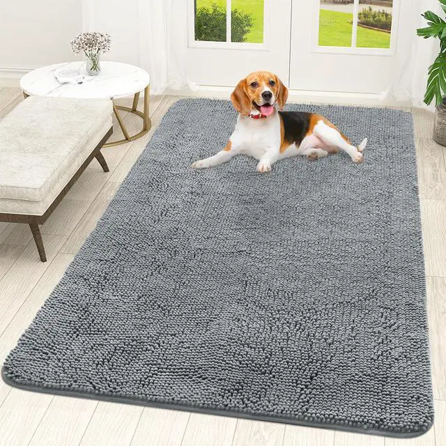 OLANLY Dog Door Mat for Muddy Paws 59x35, Absorbs Moisture and Dirt, Absorbent Non-Slip Washable Doormat, Quick Dry Chenille Mud Mat for Dogs, Entry Indoor Entryway Carpet for Inside Floor, Grey