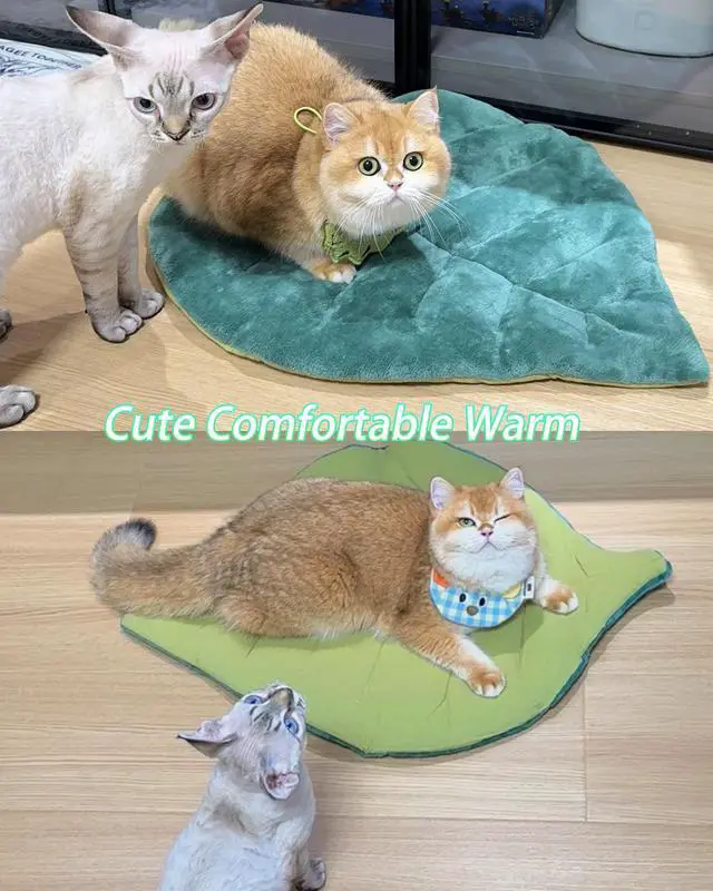 1. Keep Your Cat Warm and ComfyThe leaf-shaped cat bed mat features a premium flannel surface with 100% cotton filling. This makes the pet mat extremely safe and soft. kittens mat Cotton is lightweight, breathable, and has a delicate touch, providing excellent heat retention and resistance to deformation. Help your pet stay cozy and comfortable throughout the autumn and winter, showing them you care.