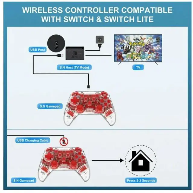 First Connect: You can use USB cable to Connect the controller with your console and press the HOME button. Then you can pull out the cable and use it wireless.