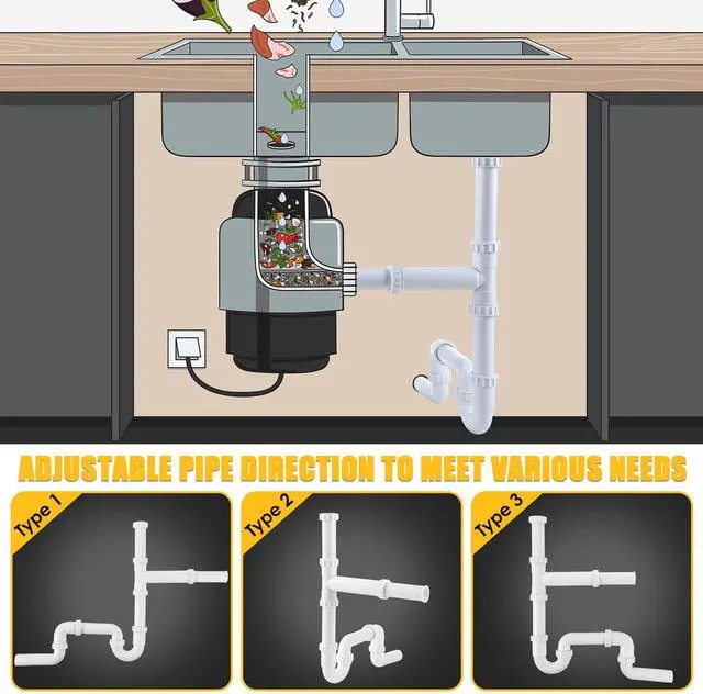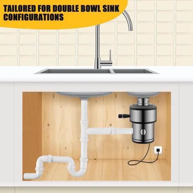 Features: Perfect for Double Sink Setups Efficiently connects your garbage disposal and sink drain pipes, ensuring smooth water flow. Universal 1-1/2" Fit Works with standard kitchen plumbing for a hassle-free installation. Tool-Free Assembly Leak resistant rubber boots, washers, and locknuts provide a secure seal with just hand tightening. Durable & Reliable Upgraded plastic construction enhances strength and longevity. Enhanced Stability Includes three extra heavy-duty double wire spring hose clamps for a firm, leak-proof connection.