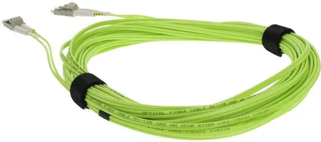 This is a 3m LC (male) to LC (male) lime green OM5 duplex fiber OFNR (Riser-Rated) patch cable. An OM5 cable has a core size of 50m microns that supports 10 Gigabit Ethernet at lengths measuring up to 550 meters, and 100 Gigabit Ethernet measuring up to 150 meters and is reverse compatible with OM4 and OM3. This optical fiber, nonconductive, riser (OFNR) cable is best suited for use in interior fiber-optic SWDM4 applications. Our patch cables are 100% compliant for all of your networking needs. Our products are guaranteed by federal law to not affect or void OEM warranties.