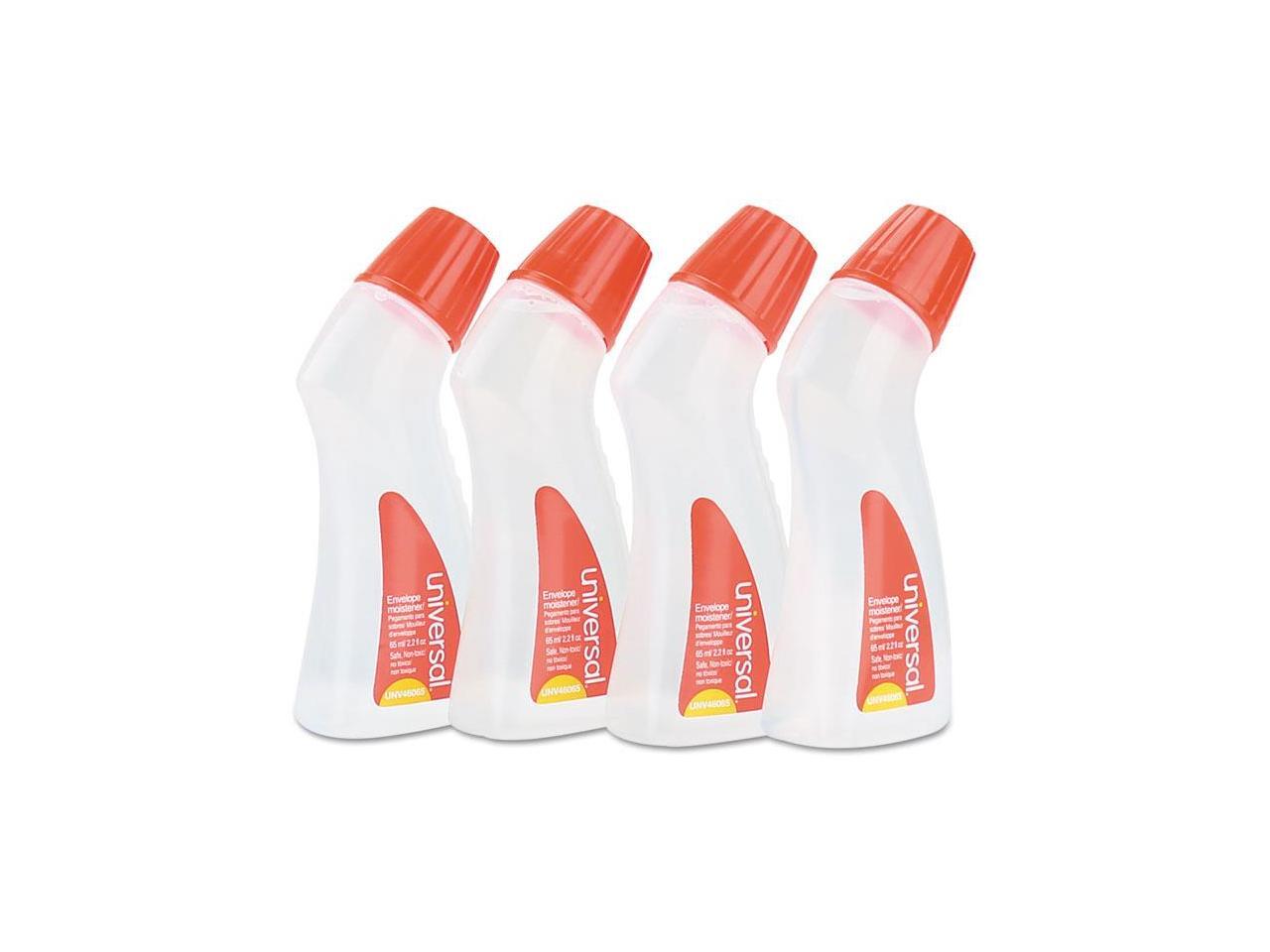 Universal UNV46065VP Envelope Moistener With Adhesive, 2.2 Oz Bottle, Clear, 4/Pack