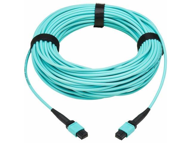 Eaton Tripp Lite Series 40/100/400G Multimode 50/125 OM3 Fiber Optic Cable 8F MPO/MPO-PC F/F Type-A Polarity OFNP Aqua 20 m 65.6 ft.