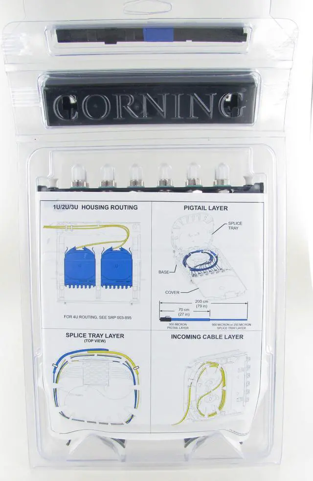 Each cassette is shipped with the pigtailed CCH adapter panel of choice, one rail for use with CCH-01U/2U/3U housings, and two rails used with CCH-04U housings. Grommets and cable ties for additional strain relief and protective braided tubing for incoming cable are also included. Splicing cassettes ship with the appropriate quantity and type of heat-shrink splice protectors.
