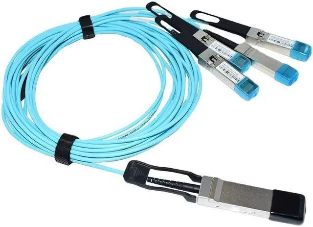 100G QSFP28 to 4x25G SFP28 active optical cables are suitable for very short distances and offer a very cost-effective way to establish a 100-gigabit link QSFP28 ports to 4x 25G SFP28 within racks and across adjacent racks..