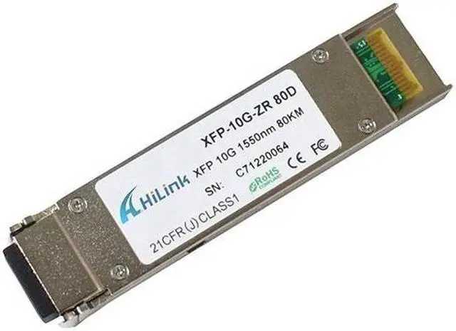 HILINK HLXP551XL-CD80, L Small Form Factor 10Gb/s (XFP) transceivers comply with the current XFP Multi-Source Agreement (MSA) Specification. They are a true multi-protocol transceiver complying with 80km SONET OC-192 and SDH STM-64 per ITU-T G. 959.1, and also support 10GBASE-ZR/ZW 80km 10-Gigabit Ethernet, 10-Gigabit Fibre Channel, and all related ITU-T G. 709 FEC (OTN) data rates. Digital diagnostics functions are available via a 2-wire serial interface, as specified in the XFP MSA.