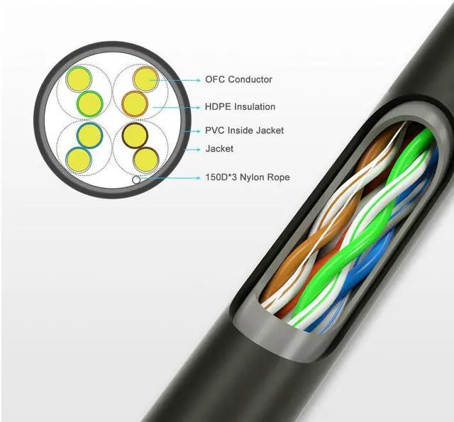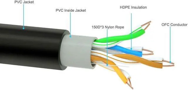 • 8 core 24AWG Outdoor Waterproof CAT5e Network Cable