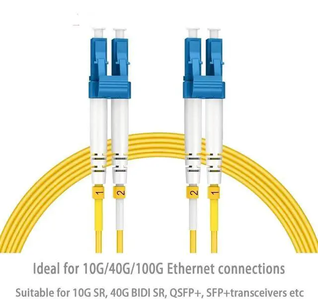 [(Wide Application)] Whether you're using AI for data processing, machine learning, or other applications, the OS2 LC-LC Single Mode Duplex Fiber Patch Cable is ideal for connecting high-speed transceivers such as 10G SR, 40G BIDI SR, QSFP+, SFP+, and more. It is suitable for 1G/10G/40G/100G/400G Ethernet connections, making it a versatile choice for data centers, cloud storage networks, server farms and any other environments where reliable fiber optic connectivity is essential.