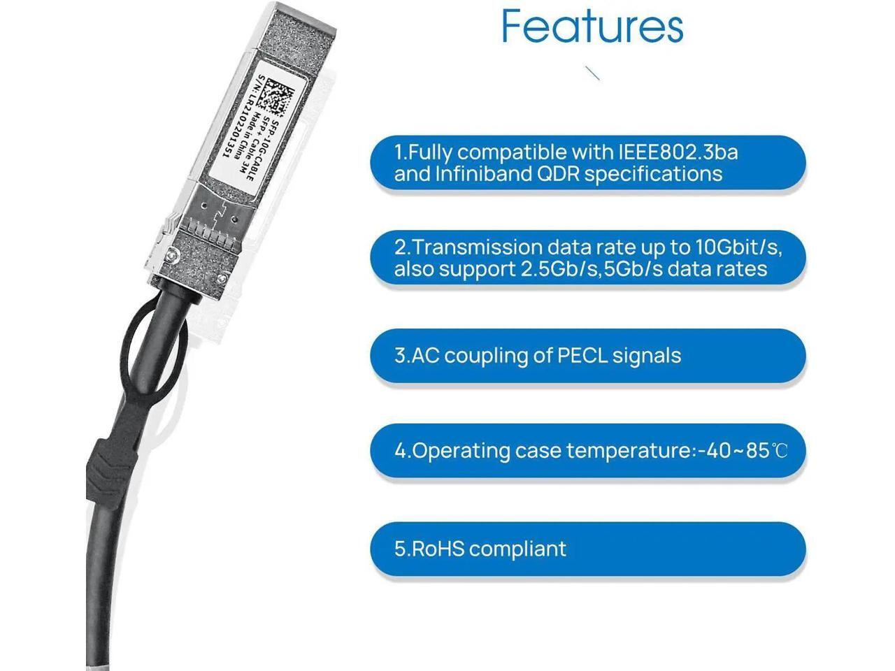 - High-Speed Data Transfer: SFP+ 10G Direct Attach Cable ensures lightning-fast data transfer, making it ideal for high-demand network applications and large file transfers.