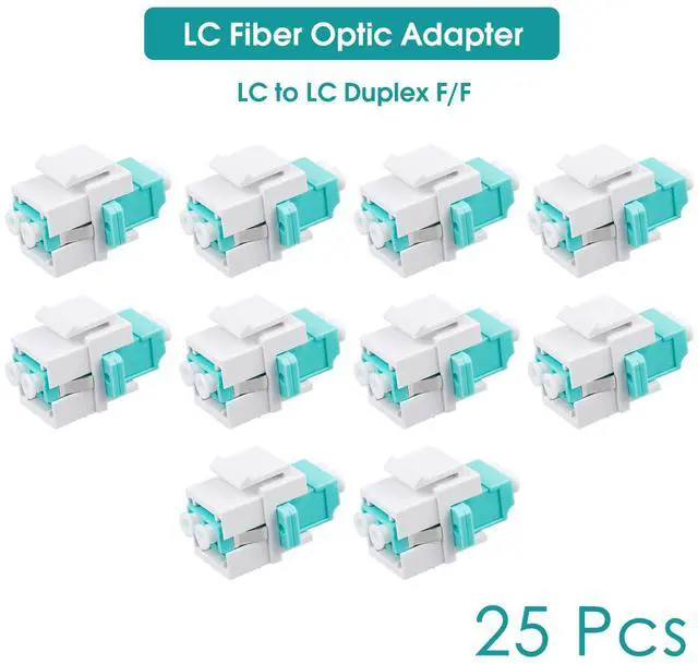 10-Pack LC/OM3 Fiber Optic Coupler Keystone Jack Modular for Patch Panels and Wall Plates Fiber Optic Cable Adapter LC Duplex Multimode 25PACK