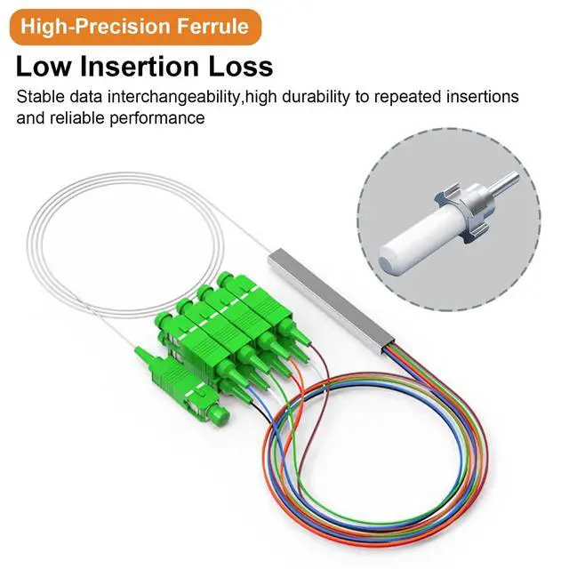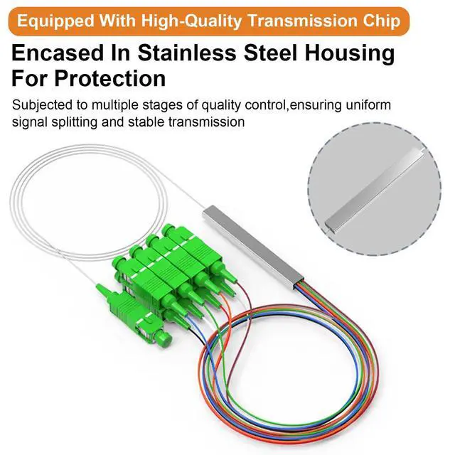 [Fiber Optical Splitter]This fiber optical splitter adopts A-grade high-quality optical fiber cores, which can achieve uniform splitting and ensure that each user receives A stable and consistent optical fiber signal.