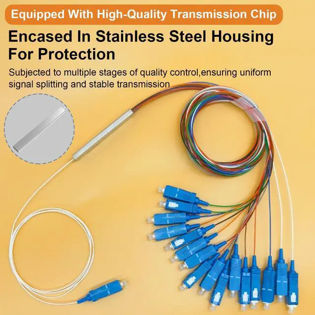 [Fiber Optical Splitter]This fiber optical splitter adopts A-grade high-quality optical fiber cores, which can achieve uniform splitting and ensure that each user receives A stable and consistent optical fiber signal.