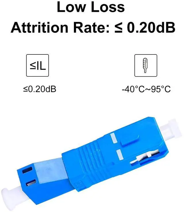 [Low Loss] To reduce signal loss, it is insensitive to light waves and can meet the transmission requirements of wavelengths 1310nm and 1550nm. Compact and lightweight, plug and play of insertion frequency with over 1000 times, and has good flame retardancy, high temperature resistance, high impact strength and beautiful appearance.