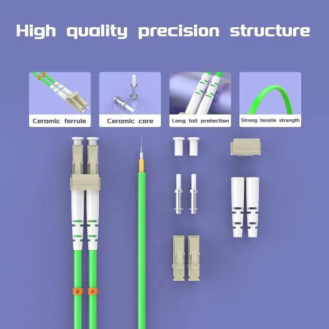The OM5 fiber optic jumper adopts the material formula and forming process technology of nano zirconia powder injection molding, featuring a high return loss of e 50dB, low insertion loss of d" 0.3dB, and low attenuation characteristics to provide precise alignment for ensuring signal integrity.