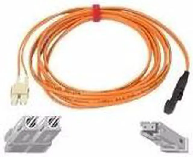 Patch cables are under so much stress. Users are always wanting more; more bandwidth, smaller connectors, longer lengths. This fiber optic cable is perfectly well adjusted. Confident in its almost limitless bandwidth, secure in its technology, this bold spirited cable won't buckle under pressure. This connector is less than half the size of current SC connectors, yet still offers a dual fiber connector. The MT-RJ/SC is a 62.5/125 micron multimode duplex fiber patch cable with one MT-RJ duplex connector on one end and two SC connectors on the other.