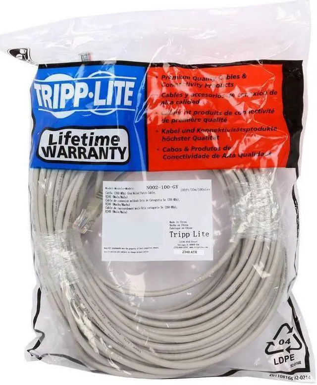 TRIPP LITE N002-100-GY 100 ft. Cat 5E Gray 350MHz Molded Patch Cable