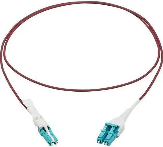 The OM4-rated adapter has a magenta jacket, which is easy to identify quickly in a crowded patch panel or switch and helps prevent the cable from becoming accidentally disconnected.