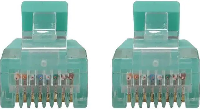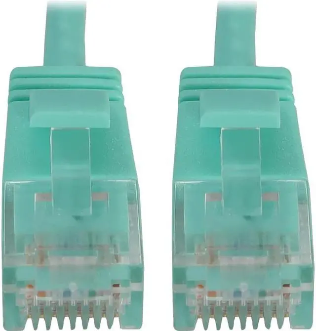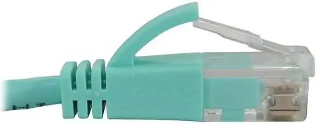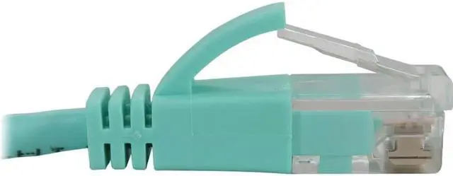 The cable has an aqua PVC jacket, which is easy to identify quickly in a crowded patch panel or switch and helps prevent the cable from becoming accidentally disconnected.
