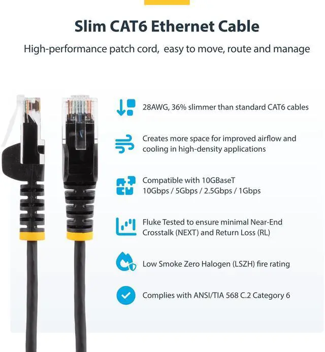 StarTech 9in Purple Slim CAT6 Ethernet Cable Slim Snagless RJ45 UTP LSZH 28AWG Bare Copper Slim Network Patch Cord Fluke Tested