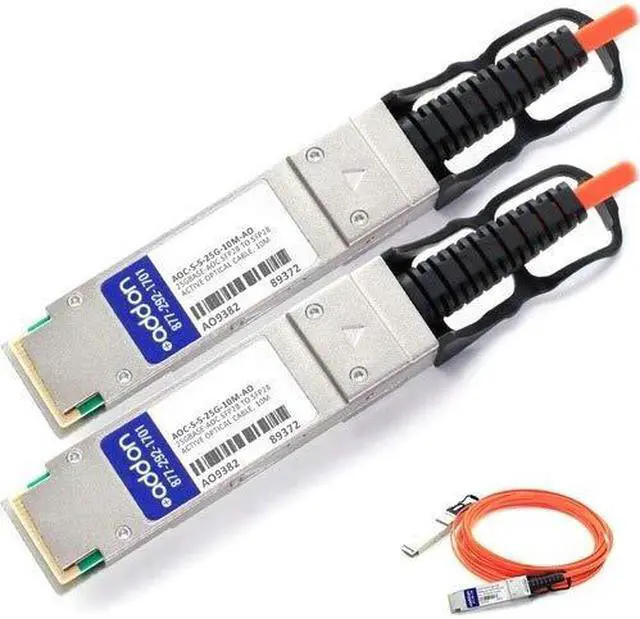 This is an Arista Networks AOC-S-S-25G-10M compatible 25GBase-AOC SFP28 to SFP28 active optical cable that operates over active fiber with a maximum reach of 10m. At a wavelength of 850nm it has been programmed uniquely serialized and data-traffic and application tested to ensure it is 100% compliant and functional. This active optical cable is TAA (Trade Agreements Act) compliant and is built to comply with MSA (Multi-Source Agreement) standards. We stand behind the quality of our products and proudly offer a limited lifetime warranty. 10m Arista Networks AOC-S-S-25G-10M compatible active optical cable to fit your application needsSFP28 male to SFP28 male for connectivity with easeComplies with all multi-source agreement (MSA) standardsThis product is TAA compliant