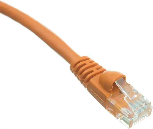 25 foot Cat6 Orange Ethernet Patch Cable, Snagless/Molded Boot. Cat6 Ethernet cables of the 25 foot length have a variety of uses. These cables will provide a greater reach for those situations that require more serious distances. These Ethernet Cables are great for the home office or any other environment. Cat6 cables are used for networking, data transfer, and phone lines. Cat6 Cable is used in network applications and has been designed specifically for Gigabit Ethernet applications. They perform at high-data transfer rates, and work with ATM and gigabit speed products. This particular cable is a orange UTP (Unshielded Twisted Pair) patch cable with molded boots (snagless installation) and extra protection for the RJ45 connector and clip. The individual conductors are 24AWG (American wire gauge) stranded pure copper. Cat6 patch cables are stranded to improve flexibility. Pure copper conductors provide the best signal possible. The RJ45 plug features gold connectors to prevent corrosion thus ensuring a longer cable life. Our Cat6 Ethernet patch cables exceed the EIA/TIA568B standard.