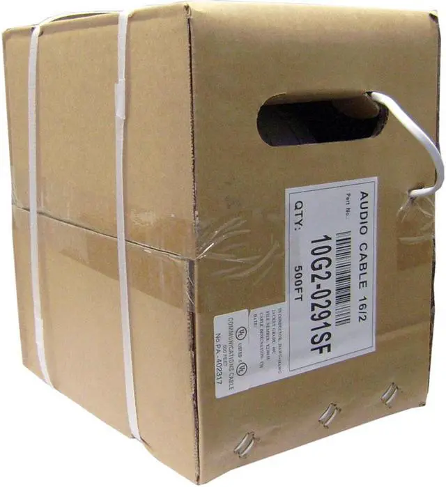 This 500 foot 12 AWG, 2 conductor copper speaker wire is ideal for wiring the speakers in your home theater or house to your receiver. Featuring pure copper, this speaker cable is sure to deliver all the nuances in your audio media. Cable is dispensed in a convenient pullbox. Conductor: Construction Stranded 12AWG(165/0.16mm). Material: Oxygen Free Copper. Insulation: Material PVC. Average thickness: 0.46 mm. Color: Red and Black. Filler: Material Nylon. Jacket: Material PVC. Average thickness: 0.65 mm. Color: White.
