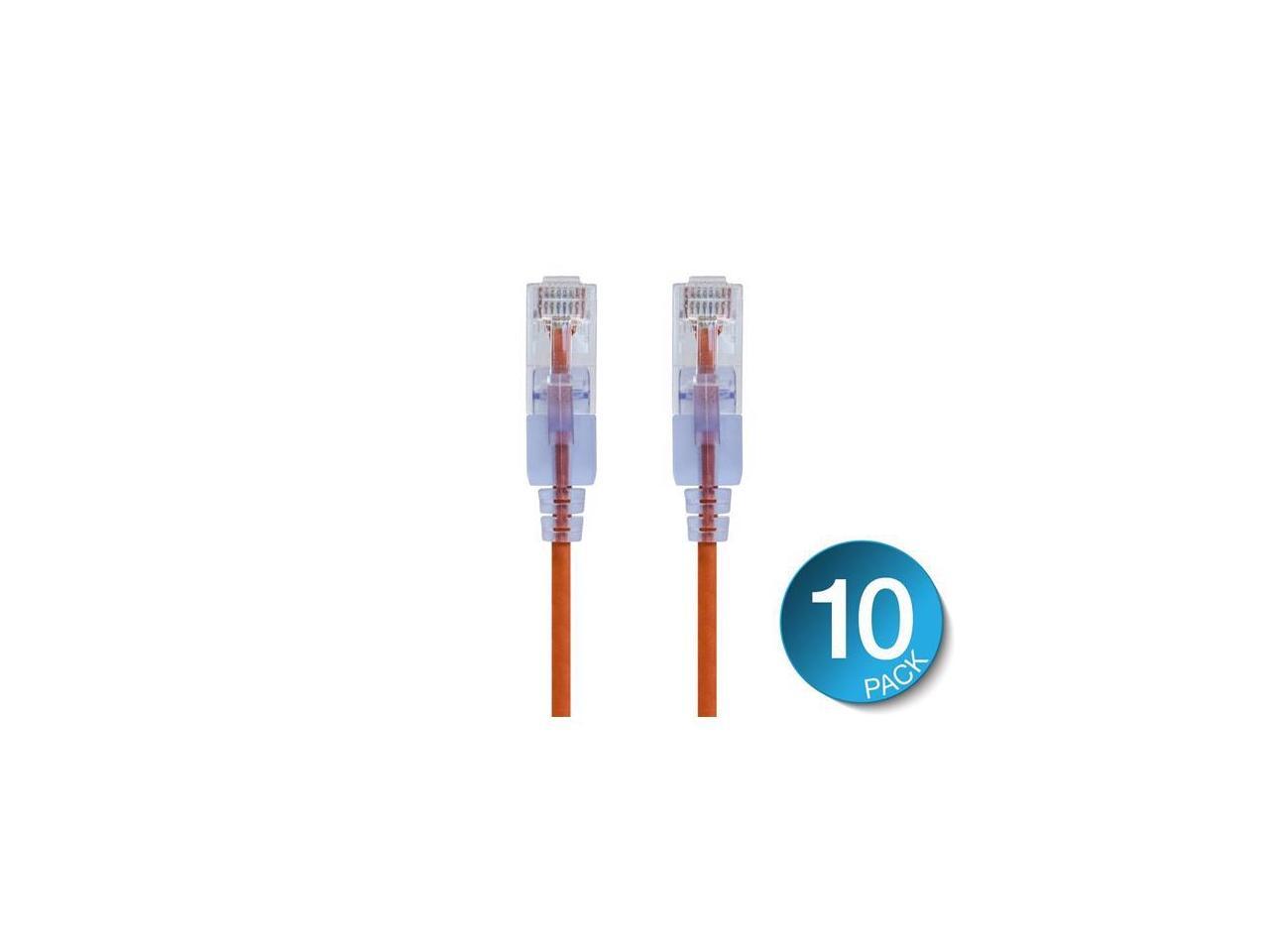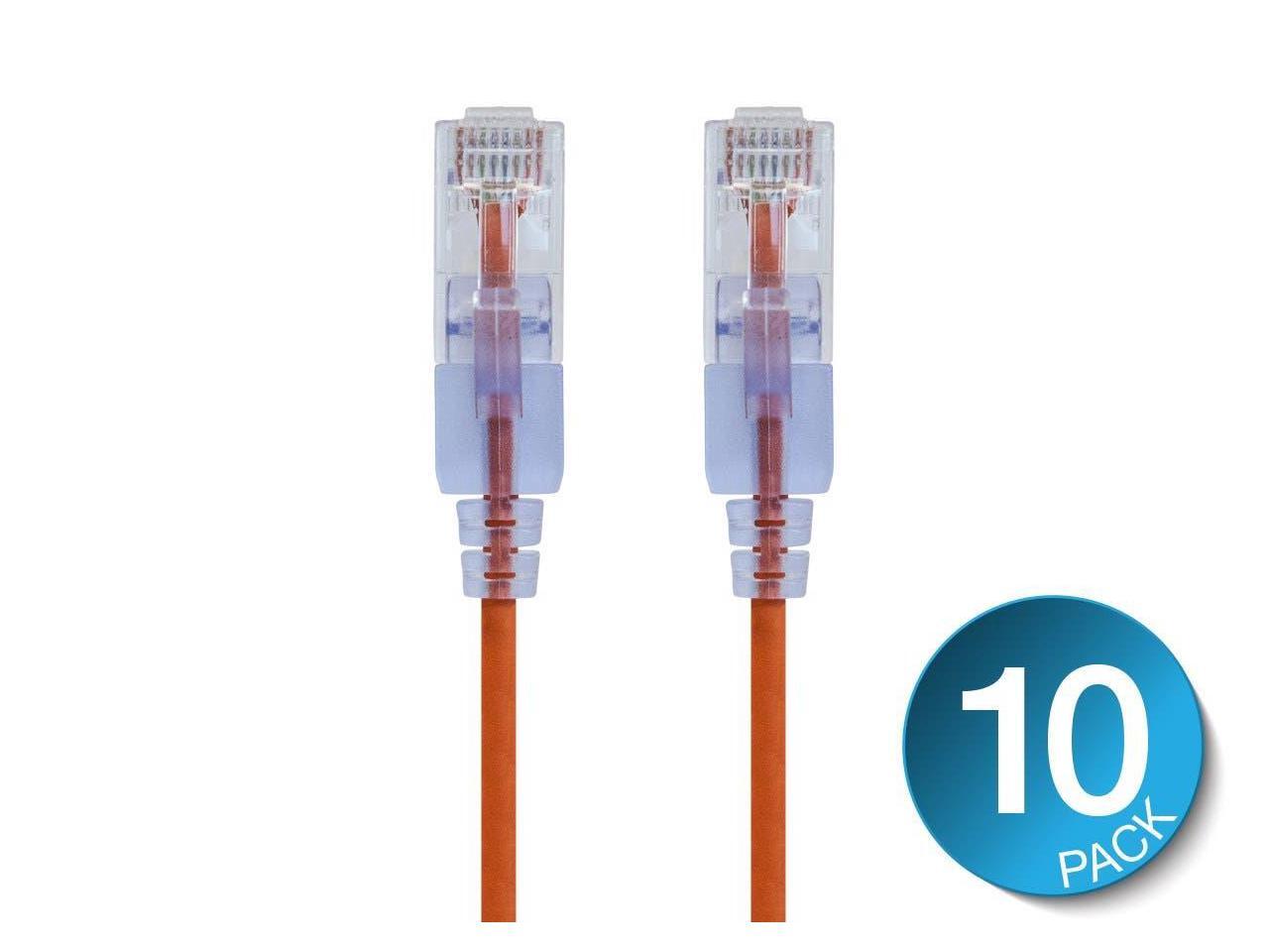 Monoprice 16331 10 ft. SlimRun Cat6A 10G Ethernet Network Patch Cable, Orange - Pack of 10