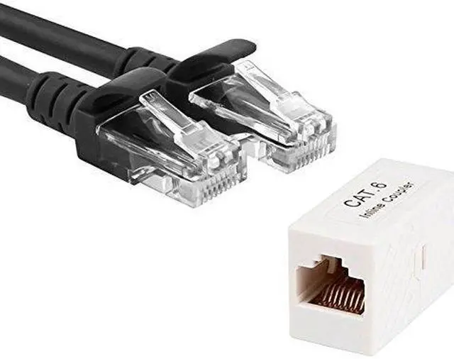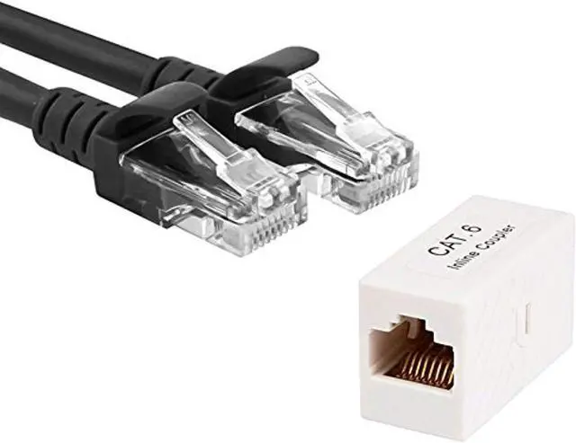 Comes with a 25 ft black Category 6 Ethernet cable AND an Inline Cat6 Coupler. 25FT 24AWG Cat6 550MHz UTP Ethernet Bare Copper Network Cable - Black