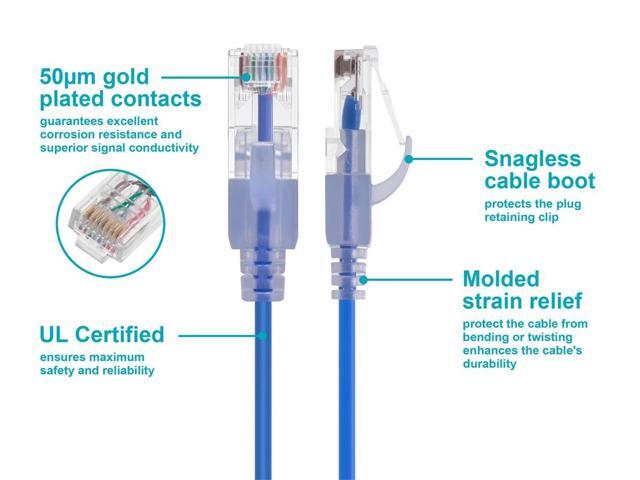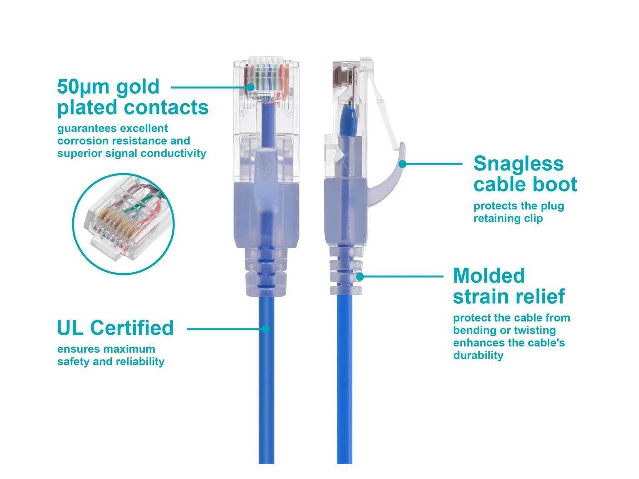 MONOPRICE CAT6A 7FT BLUE PATCH CABLE_ UTP_ 30AWG_ 10G_ PURE BARE COPPER_ SNAGLES