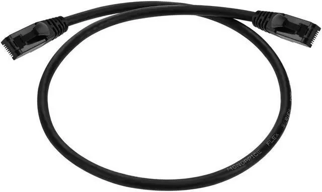 Monoprice Cat6A 2ft Black Flexible TPE Patch Cable, UTP, 24AWG, 500MHz, Pure Bare Copper, Snagless RJ45, Flex Series Eth