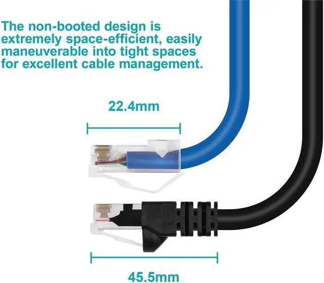 The Monoprice Non-Booted design of our Ethernet cable is a game-changer for high-density environments. By eliminating the boot, the cable takes up significantly less space, allowing for a cleaner, more organized setup. This feature is particularly beneficial for data centers, server rooms, and other installations where space optimization is crucial. With our Monoprice Non-Booted Ethernet cable, you can achieve a neat and efficient layout without sacrificing performance.