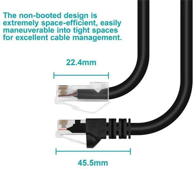 The Monoprice Non-Booted design of our Ethernet cable is a game-changer for high-density environments. By eliminating the boot, the cable takes up significantly less space, allowing for a cleaner, more organized setup. This feature is particularly beneficial for data centers, server rooms, and other installations where space optimization is crucial. With our Monoprice Non-Booted Ethernet cable, you can achieve a neat and efficient layout without sacrificing performance.