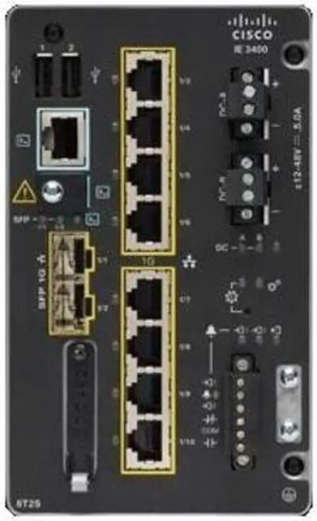 Ethernet SwitchMarketing Information: The Cisco Catalyst® IE3400 Rugged Series ushers in mainstream adoption of advanced Gigabit Ethernet connectivity in a compact form-factor, modular switch purpose-built for a wide variety of extended enterprise and industrial applications. Product overview The Cisco Catalyst IE3400 Rugged Series switches deliver advanced, high-speed Gigabit Ethernet connectivity in a compact form factor, and are designed for a wide range of industrial applications where hardened products are required. The modular design of the Cisco Catalyst IE3400 Rugged Series offers the flexibility to expand up to 26 ports of Gigabit Ethernet with a range of expansion module options. The platform is built to withstand harsh environments in manufacturing, energy, transportation, mining, smart cities, and oil and gas. The IE3400 platform is also ideal for extended enterprise deployments in outdoor spaces, warehouses, and distribution centers. The IE3400 Series runs Cisco IOS® XE, a next-generation operating system with built-in security and trust, featuring secure boot, image signing, and the Cisco® Trust anchor module. Cisco IOS XE also provides API-driven configuration with open APIs and data models. The Cisco Catalyst IE3400 Rugged Series can be managed with powerful management tools such as Cisco DNA Center and Industrial Network Director, and can be easily set up with a completely redesigned, user-friendly, modern GUI tool called WebUI.